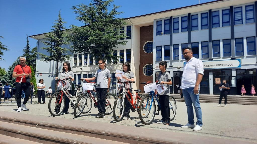 Tüm sene devam eden ve takibi Türkçe öğretmenlerimiz tarafından yapılan Kitap Kurdu projesi kapsamında kendi kademelerinde birinci olan öğrencilerimize bisiklet hediye edildi.