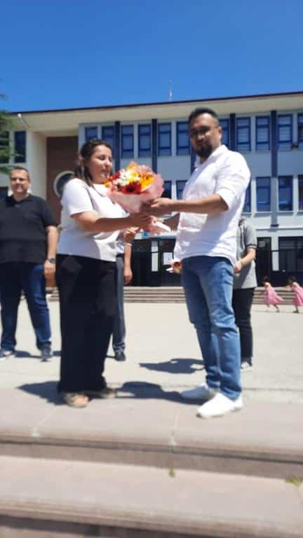 Okul Müdürümüz Duran KURT tarafından bu senin sonu ile birlikte okulumuzdan ayrılacak olan Müdür Yardımcımız Mehmet CANBAKAN'a, Teknolojii Tasarım Öğretmenimiz İlhan TEKELİ'ye, Sosyal Bilgler Öğretmenimiz Gözde ŞAHİN'e ve Okul Aile Birliği Başkanı Aynur ÖZTÜRK'e çiçek takdim edilerek teşekkür edildi.